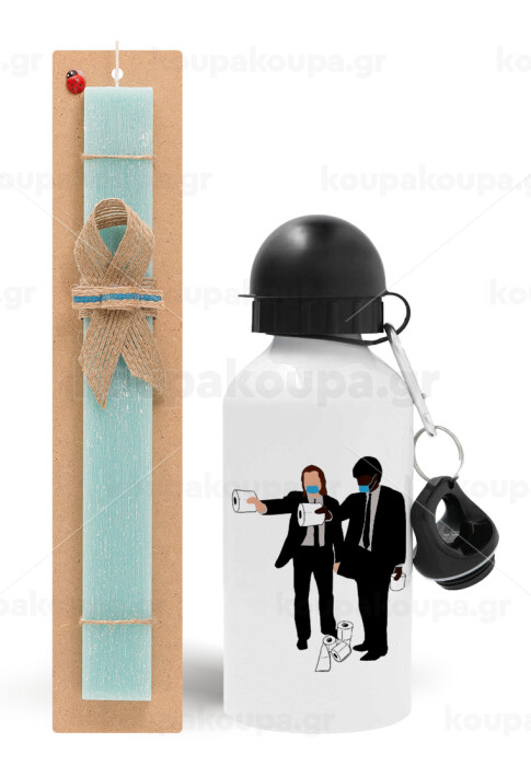Pulp Fiction 3 meter away, Πασχαλινή Λαμπάδα με παγούρι μεταλλικό αλουμινίου (500ml) & λαμπάδα αρωματική πλακέ (30cm) (ΤΙΡΚΟΥΑΖ)