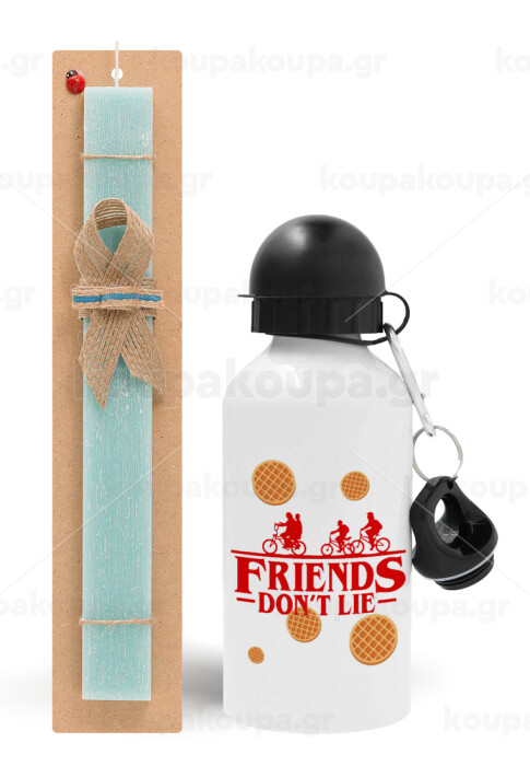 Friends Don't Lie, Stranger Things, Πασχαλινή Λαμπάδα με παγούρι μεταλλικό αλουμινίου (500ml) & λαμπάδα αρωματική πλακέ (30cm) (ΤΙΡΚΟΥΑΖ)