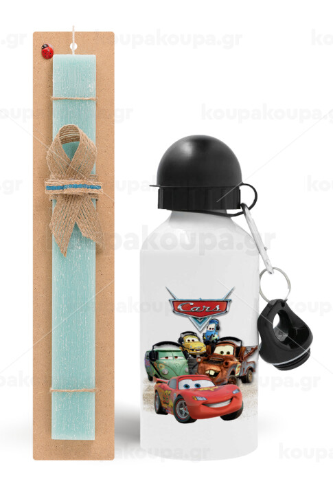 Αυτοκίνητα, Πασχαλινή Λαμπάδα με παγούρι μεταλλικό αλουμινίου (500ml) & λαμπάδα αρωματική πλακέ (30cm) (ΤΙΡΚΟΥΑΖ)