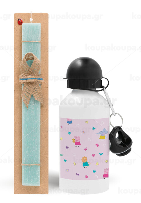 Πέππα το γουρουνάκι και οι φίλοι της, Πασχαλινή Λαμπάδα με παγούρι μεταλλικό αλουμινίου (500ml) & λαμπάδα αρωματική πλακέ (30cm) (ΤΙΡΚΟΥΑΖ)