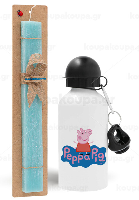 Πέππα το γουρουνάκι μπλε με όνομα, Πασχαλινή Λαμπάδα με παγούρι μεταλλικό αλουμινίου (500ml) & λαμπάδα αρωματική πλακέ (30cm) (ΤΙΡΚΟΥΑΖ)