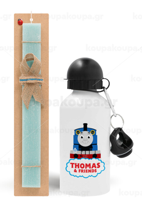 Τόμας το τρενάκι, Πασχαλινή Λαμπάδα με παγούρι μεταλλικό αλουμινίου (500ml) & λαμπάδα αρωματική πλακέ (30cm) (ΤΙΡΚΟΥΑΖ)