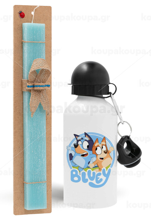 Μπλε, Πασχαλινή Λαμπάδα με παγούρι μεταλλικό αλουμινίου (500ml) & λαμπάδα αρωματική πλακέ (30cm) (ΤΙΡΚΟΥΑΖ)