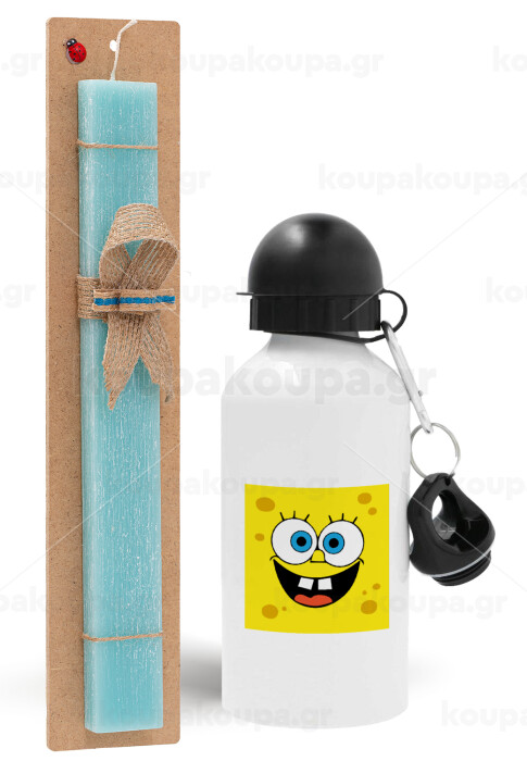 Μπομπ, Πασχαλινή Λαμπάδα με παγούρι μεταλλικό αλουμινίου (500ml) & λαμπάδα αρωματική πλακέ (30cm) (ΤΙΡΚΟΥΑΖ)