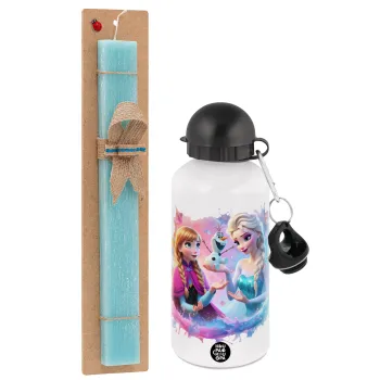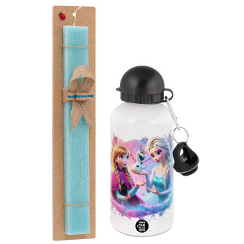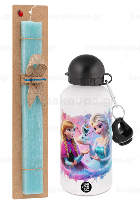 Έλσα & Άννα, Πασχαλινή Λαμπάδα με παγούρι μεταλλικό αλουμινίου (500ml) & λαμπάδα αρωματική πλακέ (30cm) (ΤΙΡΚΟΥΑΖ)