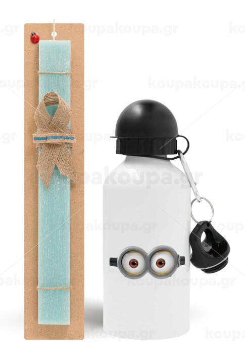 Minions, Πασχαλινή Λαμπάδα με παγούρι μεταλλικό αλουμινίου (500ml) & λαμπάδα αρωματική πλακέ (30cm) (ΤΙΡΚΟΥΑΖ)