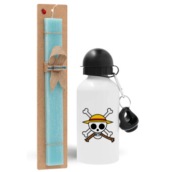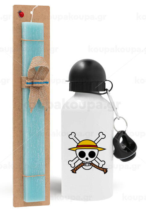 Onepiece skull, Πασχαλινή Λαμπάδα με παγούρι μεταλλικό αλουμινίου (500ml) & λαμπάδα αρωματική πλακέ (30cm) (ΤΙΡΚΟΥΑΖ)