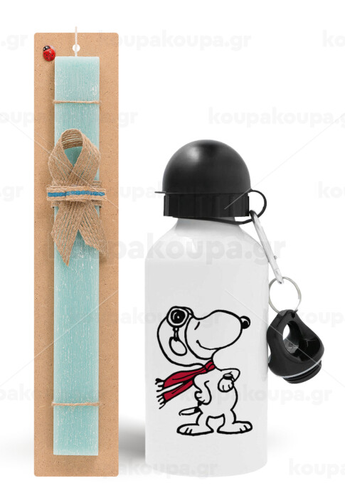 Snoopy ο πιλότος, Πασχαλινή Λαμπάδα με παγούρι μεταλλικό αλουμινίου (500ml) & λαμπάδα αρωματική πλακέ (30cm) (ΤΙΡΚΟΥΑΖ)
