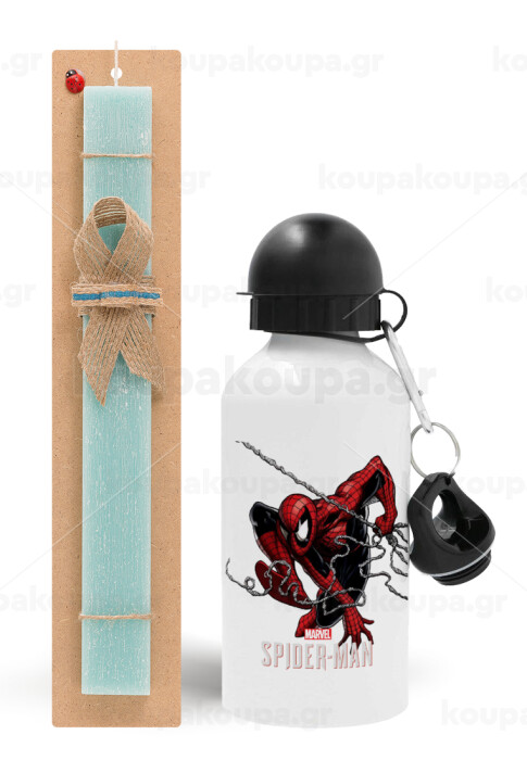 Spider-man, Πασχαλινή Λαμπάδα με παγούρι μεταλλικό αλουμινίου (500ml) & λαμπάδα αρωματική πλακέ (30cm) (ΤΙΡΚΟΥΑΖ)