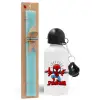 Spiderman flying, Πασχαλινή Λαμπάδα με παγούρι μεταλλικό αλουμινίου (500ml) & λαμπάδα αρωματική πλακέ (30cm) (ΤΙΡΚΟΥΑΖ)
