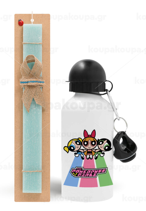The powerpuff girls , Πασχαλινή Λαμπάδα με παγούρι μεταλλικό αλουμινίου (500ml) & λαμπάδα αρωματική πλακέ (30cm) (ΤΙΡΚΟΥΑΖ)