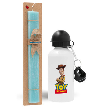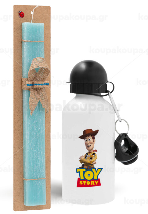 Woody cowboy, Πασχαλινή Λαμπάδα με παγούρι μεταλλικό αλουμινίου (500ml) & λαμπάδα αρωματική πλακέ (30cm) (ΤΙΡΚΟΥΑΖ)