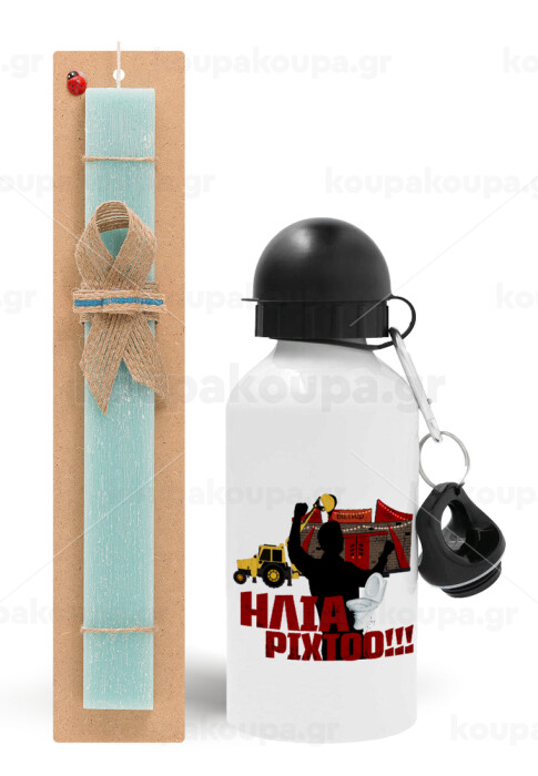 Ηλία ρίχτο!, Πασχαλινή Λαμπάδα με παγούρι μεταλλικό αλουμινίου (500ml) & λαμπάδα αρωματική πλακέ (30cm) (ΤΙΡΚΟΥΑΖ)