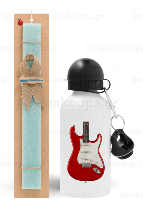 Guitar stratocaster, Πασχαλινή Λαμπάδα με παγούρι μεταλλικό αλουμινίου (500ml) & λαμπάδα αρωματική πλακέ (30cm) (ΤΙΡΚΟΥΑΖ)