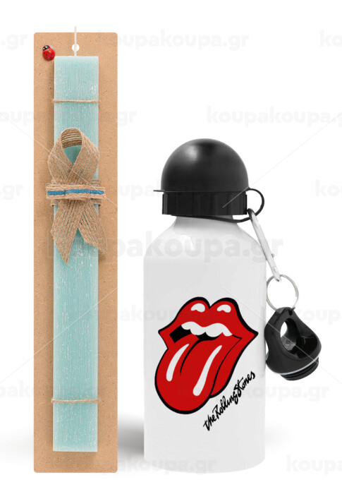The rolling stones, Πασχαλινή Λαμπάδα με παγούρι μεταλλικό αλουμινίου (500ml) & λαμπάδα αρωματική πλακέ (30cm) (ΤΙΡΚΟΥΑΖ)
