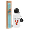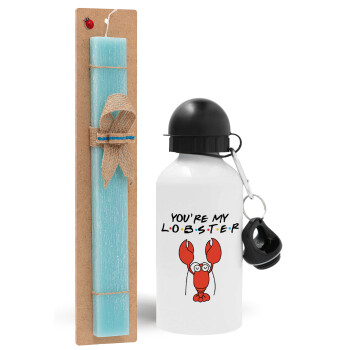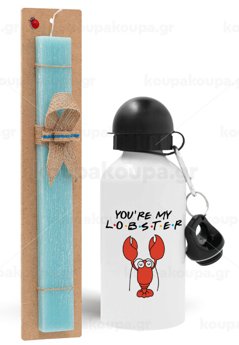 Friends you're my lobster, Πασχαλινή Λαμπάδα με παγούρι μεταλλικό αλουμινίου (500ml) & λαμπάδα αρωματική πλακέ (30cm) (ΤΙΡΚΟΥΑΖ)