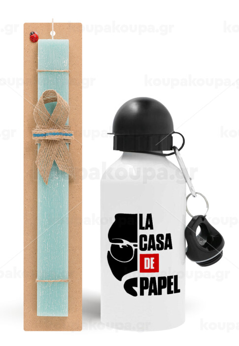 La casa de papel, Πασχαλινή Λαμπάδα με παγούρι μεταλλικό αλουμινίου (500ml) & λαμπάδα αρωματική πλακέ (30cm) (ΤΙΡΚΟΥΑΖ)