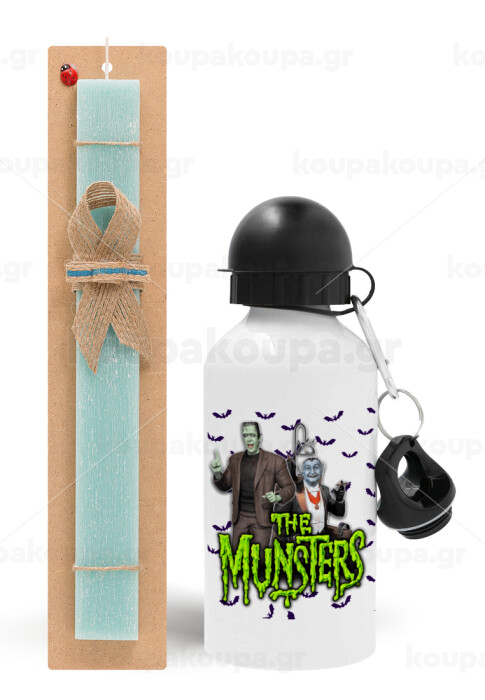 The munsters, Πασχαλινή Λαμπάδα με παγούρι μεταλλικό αλουμινίου (500ml) & λαμπάδα αρωματική πλακέ (30cm) (ΤΙΡΚΟΥΑΖ)