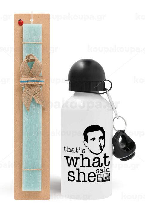 The office Michael That's what she said, Πασχαλινή Λαμπάδα με παγούρι μεταλλικό αλουμινίου (500ml) & λαμπάδα αρωματική πλακέ (30cm) (ΤΙΡΚΟΥΑΖ)