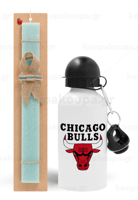 Chicago Bulls, Πασχαλινή Λαμπάδα με παγούρι μεταλλικό αλουμινίου (500ml) & λαμπάδα αρωματική πλακέ (30cm) (ΤΙΡΚΟΥΑΖ)