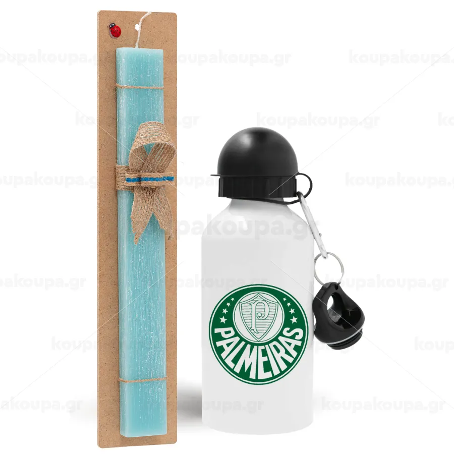 Palmeiras, Πασχαλινή Λαμπάδα με παγούρι μεταλλικό αλουμινίου (500ml) & λαμπάδα αρωματική πλακέ (30cm) (ΤΙΡΚΟΥΑΖ)