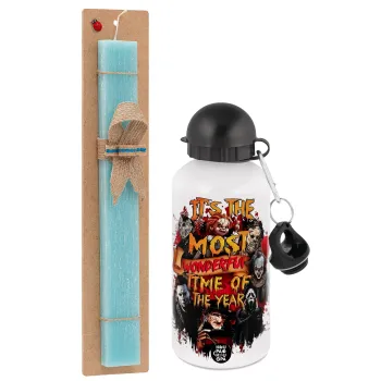Halloween it's most wonderful time of the year, Πασχαλινή Λαμπάδα με παγούρι μεταλλικό αλουμινίου (500ml) & λαμπάδα αρωματική πλακέ (30cm) (ΤΙΡΚΟΥΑΖ)