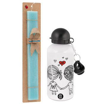 Hold my hand for ever, Πασχαλινή Λαμπάδα με παγούρι μεταλλικό αλουμινίου (500ml) & λαμπάδα αρωματική πλακέ (30cm) (ΤΙΡΚΟΥΑΖ)
