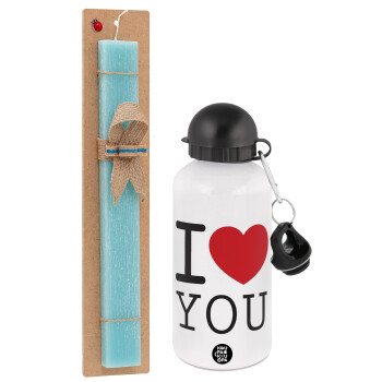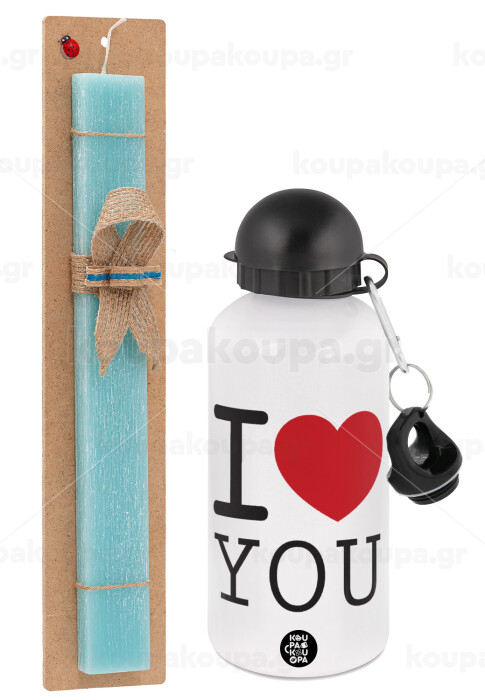 I Love you classic, Πασχαλινή Λαμπάδα με παγούρι μεταλλικό αλουμινίου (500ml) & λαμπάδα αρωματική πλακέ (30cm) (ΤΙΡΚΟΥΑΖ)
