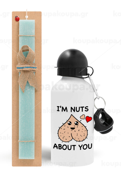 I'm Nuts About You, Πασχαλινή Λαμπάδα με παγούρι μεταλλικό αλουμινίου (500ml) & λαμπάδα αρωματική πλακέ (30cm) (ΤΙΡΚΟΥΑΖ)