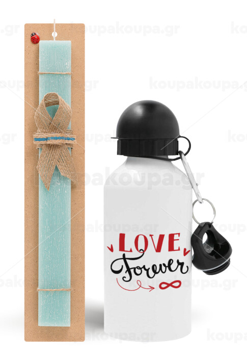 Love forever ∞, Πασχαλινή Λαμπάδα με παγούρι μεταλλικό αλουμινίου (500ml) & λαμπάδα αρωματική πλακέ (30cm) (ΤΙΡΚΟΥΑΖ)