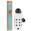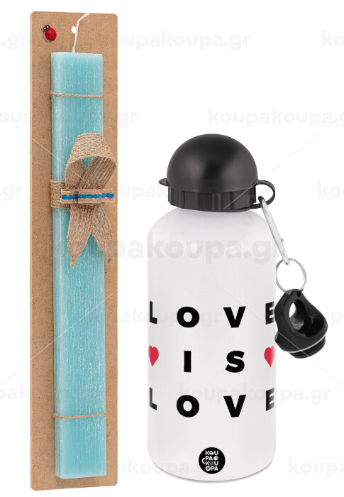 Love is Love, Πασχαλινή Λαμπάδα με παγούρι μεταλλικό αλουμινίου (500ml) & λαμπάδα αρωματική πλακέ (30cm) (ΤΙΡΚΟΥΑΖ)