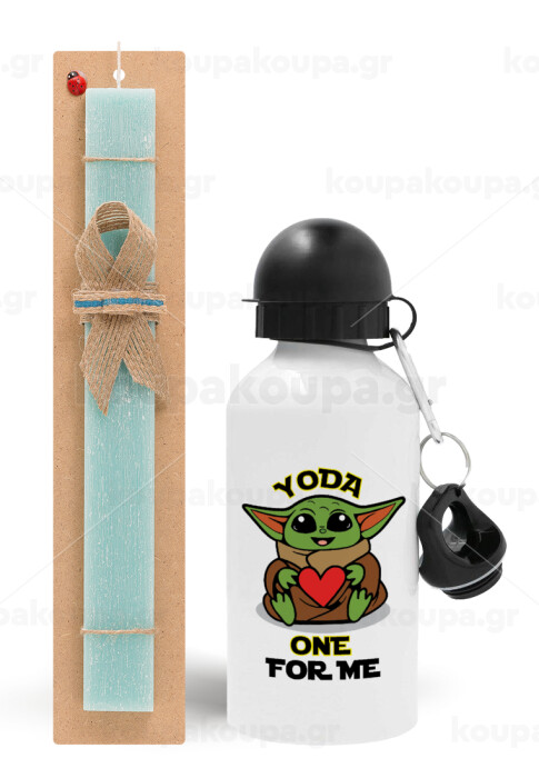 Yoda, one for me , Πασχαλινή Λαμπάδα με παγούρι μεταλλικό αλουμινίου (500ml) & λαμπάδα αρωματική πλακέ (30cm) (ΤΙΡΚΟΥΑΖ)