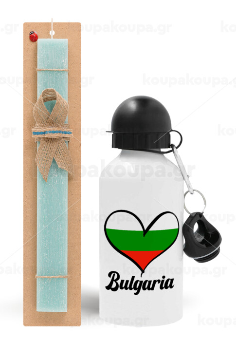 Bulgaria flag, Πασχαλινή Λαμπάδα με παγούρι μεταλλικό αλουμινίου (500ml) & λαμπάδα αρωματική πλακέ (30cm) (ΤΙΡΚΟΥΑΖ)
