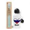 Russia flag, Πασχαλινή Λαμπάδα με παγούρι μεταλλικό αλουμινίου (500ml) & λαμπάδα αρωματική πλακέ (30cm) (ΤΙΡΚΟΥΑΖ)