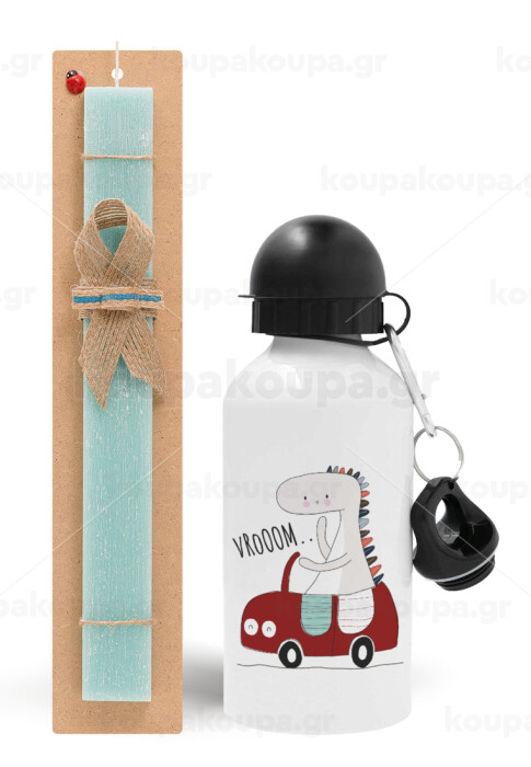 Βρουμ βρουμ, Πασχαλινή Λαμπάδα με παγούρι μεταλλικό αλουμινίου (500ml) & λαμπάδα αρωματική πλακέ (30cm) (ΤΙΡΚΟΥΑΖ)