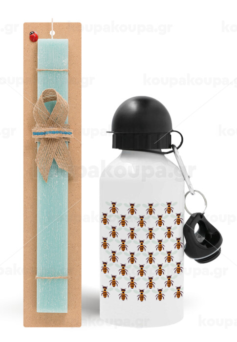 Μελισσούλες, Πασχαλινή Λαμπάδα με παγούρι μεταλλικό αλουμινίου (500ml) & λαμπάδα αρωματική πλακέ (30cm) (ΤΙΡΚΟΥΑΖ)