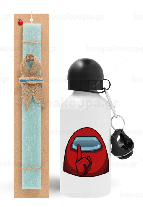 Among US, Πασχαλινή Λαμπάδα με παγούρι μεταλλικό αλουμινίου (500ml) & λαμπάδα αρωματική πλακέ (30cm) (ΤΙΡΚΟΥΑΖ)