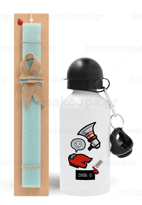 Among US Shhhh!!!, Πασχαλινή Λαμπάδα με παγούρι μεταλλικό αλουμινίου (500ml) & λαμπάδα αρωματική πλακέ (30cm) (ΤΙΡΚΟΥΑΖ)