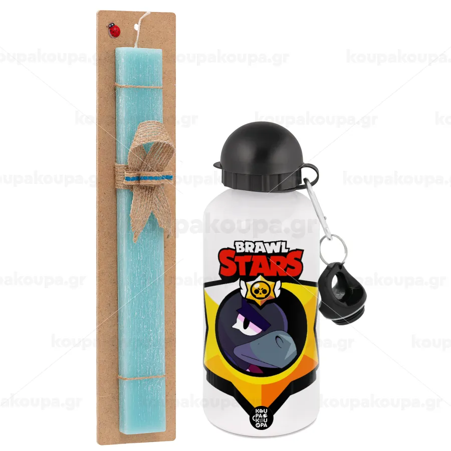 Brawl Stars Crow, Πασχαλινή Λαμπάδα με παγούρι μεταλλικό αλουμινίου (500ml) & λαμπάδα αρωματική πλακέ (30cm) (ΤΙΡΚΟΥΑΖ)