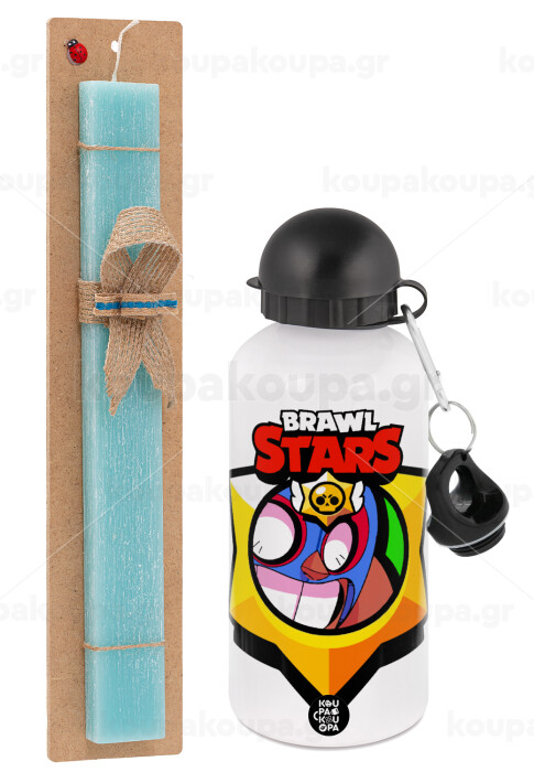 Brawl Stars El primo, Πασχαλινή Λαμπάδα με παγούρι μεταλλικό αλουμινίου (500ml) & λαμπάδα αρωματική πλακέ (30cm) (ΤΙΡΚΟΥΑΖ)