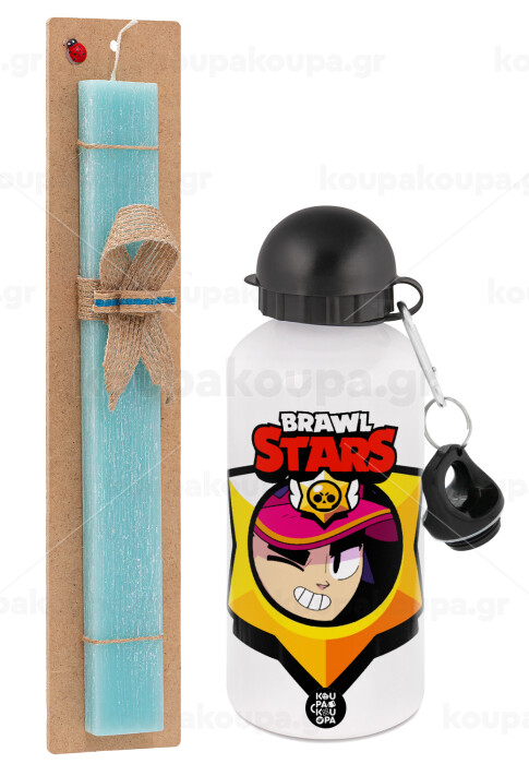 Brawl Stars Fang, Πασχαλινή Λαμπάδα με παγούρι μεταλλικό αλουμινίου (500ml) & λαμπάδα αρωματική πλακέ (30cm) (ΤΙΡΚΟΥΑΖ)
