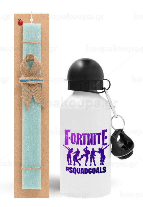 Fortnite #squadgoals, Πασχαλινή Λαμπάδα με παγούρι μεταλλικό αλουμινίου (500ml) & λαμπάδα αρωματική πλακέ (30cm) (ΤΙΡΚΟΥΑΖ)