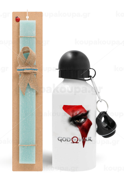 God of war Stratos, Πασχαλινή Λαμπάδα με παγούρι μεταλλικό αλουμινίου (500ml) & λαμπάδα αρωματική πλακέ (30cm) (ΤΙΡΚΟΥΑΖ)