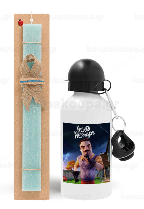 Hello Neighbor, Πασχαλινή Λαμπάδα με παγούρι μεταλλικό αλουμινίου (500ml) & λαμπάδα αρωματική πλακέ (30cm) (ΤΙΡΚΟΥΑΖ)