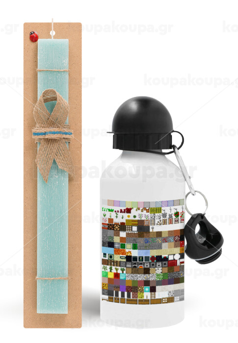 Minecraft blocks, Πασχαλινή Λαμπάδα με παγούρι μεταλλικό αλουμινίου (500ml) & λαμπάδα αρωματική πλακέ (30cm) (ΤΙΡΚΟΥΑΖ)