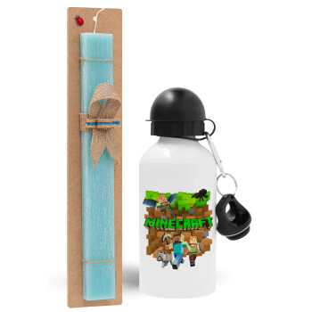 Minecraft characters, Πασχαλινή Λαμπάδα με παγούρι μεταλλικό αλουμινίου (500ml) & λαμπάδα αρωματική πλακέ (30cm) (ΤΙΡΚΟΥΑΖ)