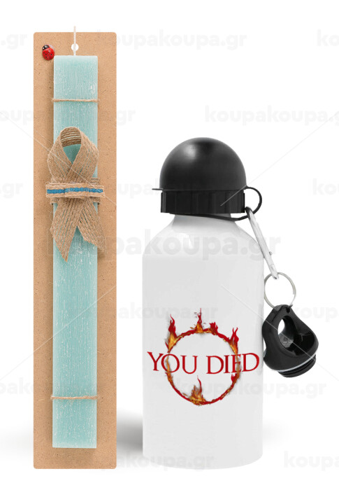 You Died | Dark Souls, Πασχαλινή Λαμπάδα με παγούρι μεταλλικό αλουμινίου (500ml) & λαμπάδα αρωματική πλακέ (30cm) (ΤΙΡΚΟΥΑΖ)