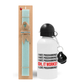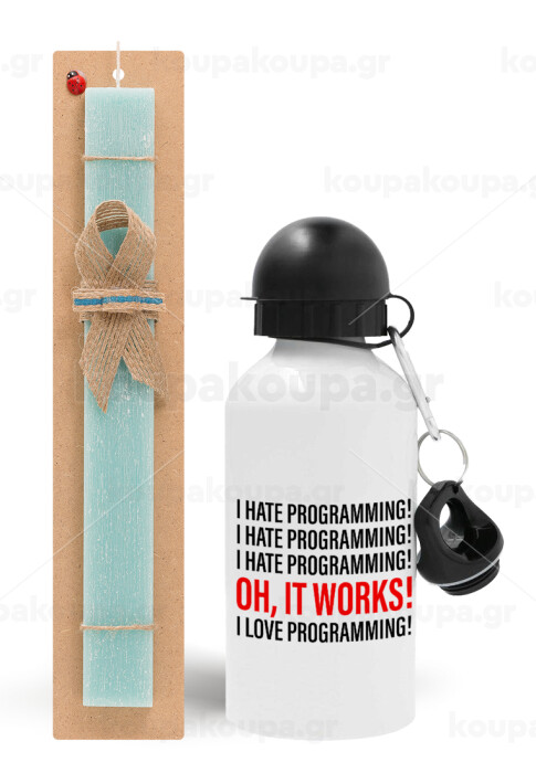I hate programming!!!, Πασχαλινή Λαμπάδα με παγούρι μεταλλικό αλουμινίου (500ml) & λαμπάδα αρωματική πλακέ (30cm) (ΤΙΡΚΟΥΑΖ)