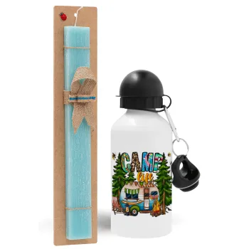 Camp Life, Πασχαλινή Λαμπάδα με παγούρι μεταλλικό αλουμινίου (500ml) & λαμπάδα αρωματική πλακέ (30cm) (ΤΙΡΚΟΥΑΖ)