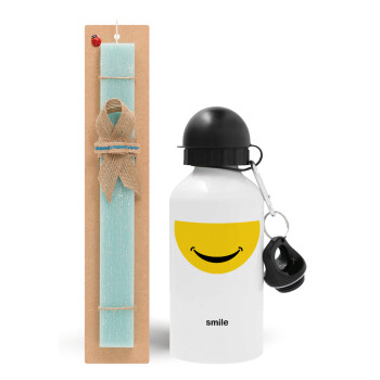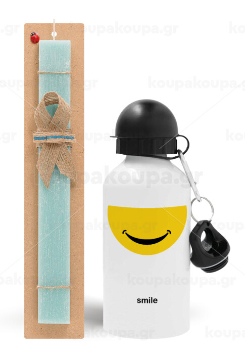 Smile Mug, Πασχαλινή Λαμπάδα με παγούρι μεταλλικό αλουμινίου (500ml) & λαμπάδα αρωματική πλακέ (30cm) (ΤΙΡΚΟΥΑΖ)